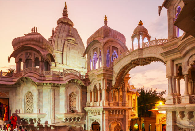 Visit Banke Bihari Temple, ISKCON Temple, Prem Mandir, and other famous temples. Experience devotional atmosphere and evening light show at Prem Mandir.